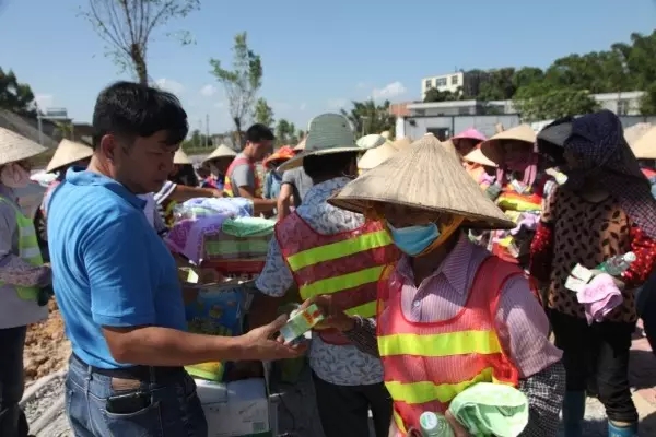 防城港的夏天持續(xù)高溫,熱氣襲人,但為了保證施工進(jìn)度,公司項目部員工不畏困難,戰(zhàn)高溫、斗酷暑,依舊堅守崗位。頂著高溫奮斗在一線崗位的員工牽動著公司領(lǐng)導(dǎo)的心,7月25日下午,在防城區(qū)總工會的支持下,受集團(tuán)公司龍其偉總裁和龍其生董事長的委托,集團(tuán)副總裁唐光源、工會主席鐘麗霞、副總經(jīng)理龐樹玉一行前往防城港市東灣綠化工程施工現(xiàn)場看望奮戰(zhàn)在高溫一線的項目部員工,為他們送去了夏季防暑物品,為員工們帶來了絲絲“清涼”。