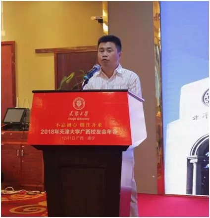 當(dāng)天,龍其生董事長(zhǎng)出席了大會(huì)并致辭,天津大學(xué)校友總會(huì)副會(huì)長(zhǎng)、天津大學(xué)原黨委副書記、紀(jì)委書記汪曣,國(guó)際教育學(xué)院院長(zhǎng)陳志華、遠(yuǎn)程與繼續(xù)教育學(xué)院院長(zhǎng)殷紅春等母校領(lǐng)導(dǎo)出席了大會(huì)并發(fā)言,出席大會(huì)的嘉賓還有天大研究生院綜合管理辦公室主任盧錚松、校友與基金事務(wù)處副處長(zhǎng)谷鈺、自動(dòng)化學(xué)院副教授蘇毅珊以及來自兄弟高校廣西校友會(huì)的代表。