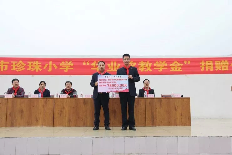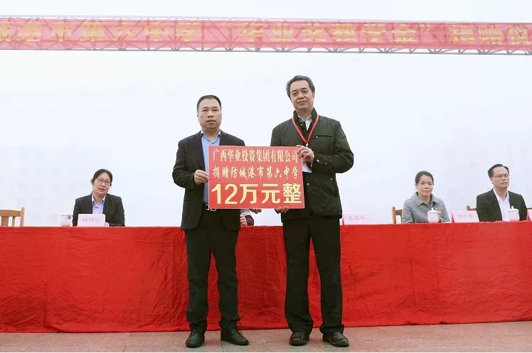 2018年12月26日上午,防城港市第六中學、防城港市珍珠小學先后隆重舉行“華業(yè)獎教學金”捐贈儀式,廣西華業(yè)投資集團分別向防城港市第六中學捐資120000元、向防城港市珍珠小學捐資78900元設(shè)立“華業(yè)獎教學金”。華業(yè)集團龍其偉總裁、工會鐘麗霞主席共同出席了兩校舉行的捐贈儀式。