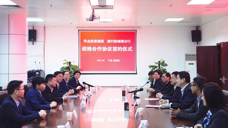 2019年2月28日,廣西華業(yè)投資集團(tuán)有限公司(下文簡稱華業(yè)集團(tuán))與中國建設(shè)銀行防城港分行(下文簡稱建行防城港分行)在防城港市港口區(qū)建行大廈舉行戰(zhàn)略合作簽約儀式。華業(yè)集團(tuán)董事長龍其生、副總裁熊昭斐、財(cái)務(wù)總監(jiān)李情,中國建設(shè)銀行防城港分行行長張學(xué)鵬、副行長黃萬洋、公司部總經(jīng)理郭世堅(jiān)、防城支行行長廖詩婷等領(lǐng)導(dǎo)出席了本次簽約儀式。