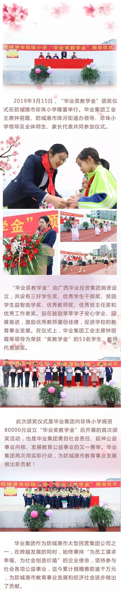 “華業(yè)獎教學(xué)金”頒獎儀式在防城港市珍珠小學(xué)隆重舉行