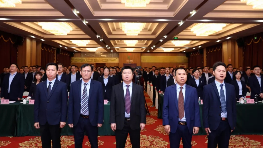 全體與會人員共同歌唱國歌和企業(yè)歌曲